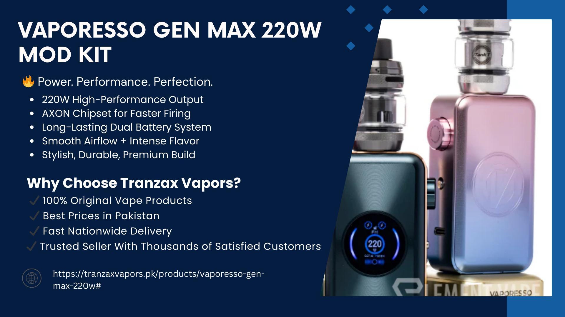 Offering a large selection of genuine vape devices, disposable vapes, pod kits, and premium e-liquids, Tranzax Vapors is a reputable online vape retailer in Pakistan. Tranzax Vapors guarantees a seamless purchasing experience with quick nationwide shipping and safe cash-on-delivery choices. The company is well-known for its high quality, affordable prices, and dependable service.